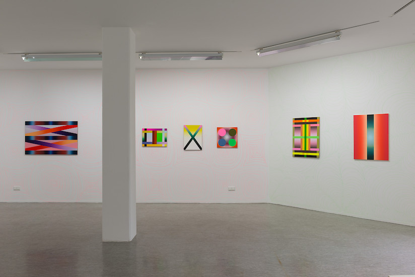 Die neuesten Bilder des Freiburger Malers werden in einer eigens vom Künstler entwickelten Raumsituation zu sehen sein. Ben Hübsch (geb. 1963) lotet malerisch in unverkennbarer Weise seit Jahren die Grenzen formaler Strenge und farbkräftiger Bildgenese aus. „Wo die formale Konstruktion Reduktion, Einfachheit und Überschaubarkeit anbietet, signalisiert die Farbe vitlalen Überschwang mit leise anarchischen Tendenzen“ so Stefan Berg in seinem grandiosen Text zu den Bildern von Ben Hübsch. Der Künstler wird in der Ausstellung „Auf einer Linie“ die Wände der Galerie als Display in überraschender Weise für die Präsentation ganz neuer Bilder bearbeiten.