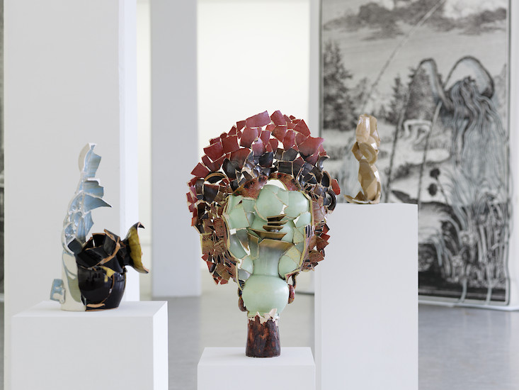 Helen Feifel spielt mit den Grenzen zwischen Präsentation und Repräsentation. Sie fügt die Scherben selbst zerbrochener Glas- und Keramikgefäße zu einem neuen Ganzen zusammen und fotografiert diese anschließend. Die Fotografie wird als Schwarzweißbild gedruckt und in einem weiteren Arbeitsschritt per Hand koloriert. Feifels Scherbenobjekte bleiben autonomes Exponat, werden zugleich aber auch als Hauptdarsteller in den zweidimensionalen Arbeiten inszeniert, die ihrerseits wiederum zwischen Fotografie und Malerei changieren.