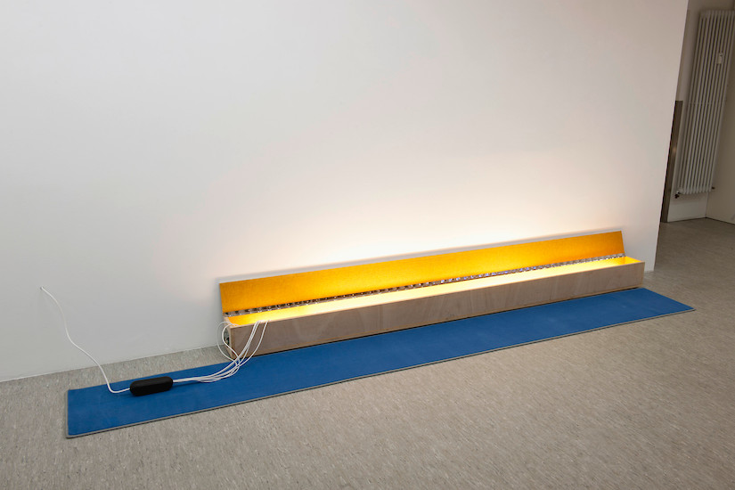 Kuhn, der in den letzten Jahren für seine Arbeit Preise und Stipendien erhielt, entwickelte für seine zweite Einzelausstellung "hifloored" bei Annette Oechsner für den Galerieraum eine umfassende Rauminstallation mit dem gleichnamigen Titel und eine Serie von Wandarbeiten.