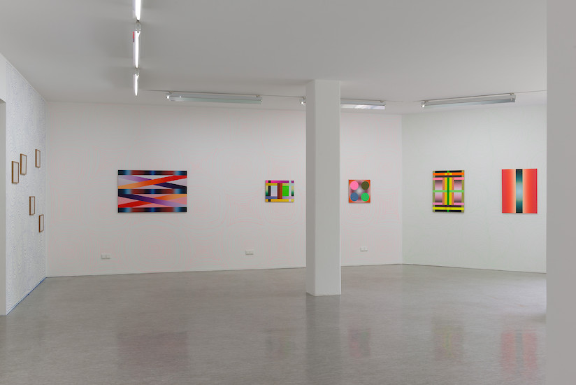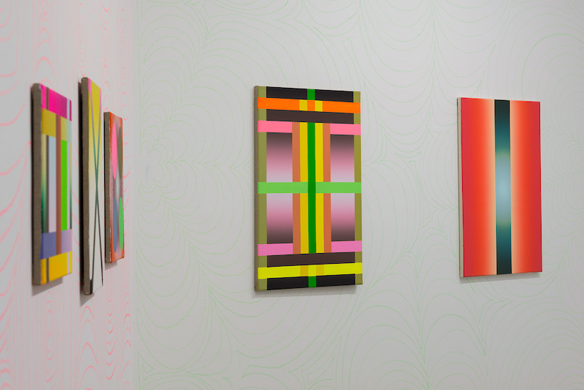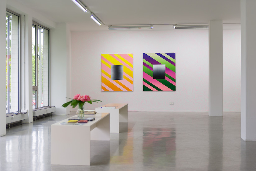 Die neuesten Bilder des Freiburger Malers werden in einer eigens vom Künstler entwickelten Raumsituation zu sehen sein. Ben Hübsch (geb. 1963) lotet malerisch in unverkennbarer Weise seit Jahren die Grenzen formaler Strenge und farbkräftiger Bildgenese aus. „Wo die formale Konstruktion Reduktion, Einfachheit und Überschaubarkeit anbietet, signalisiert die Farbe vitlalen Überschwang mit leise anarchischen Tendenzen“ so Stefan Berg in seinem grandiosen Text zu den Bildern von Ben Hübsch. Der Künstler wird in der Ausstellung „Auf einer Linie“ die Wände der Galerie als Display in überraschender Weise für die Präsentation ganz neuer Bilder bearbeiten.